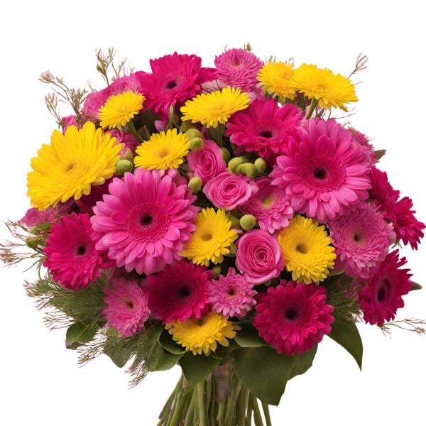 Ramo de Rosas y Gerberas con flores de temporada, ideal para celebrar momentos únicos o expresar tus sentimientos en cualquier ocasión