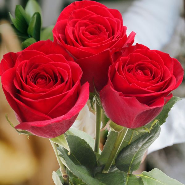 Un gesto delicado y significativo: Ramo de 3 Rosas Rojas, símbolo de amor intenso y trinidad perfecta. Ideal para un detalle romántico y personal