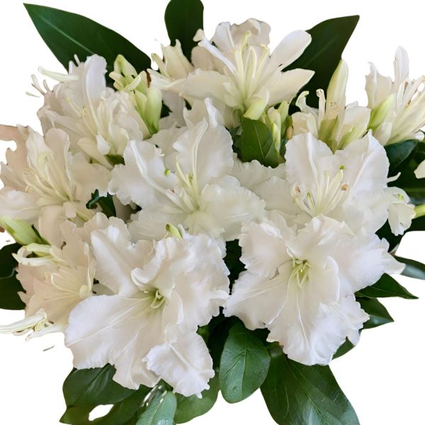 Embellece tu espacio con ‘Blanca Pureza’, un delicado ramo de Azaleas blancas. Ideal para aportar paz y frescura a cualquier ambiente.
