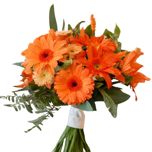 Despierta sonrisas con ‘Fuego Otoñal’, un ramo de azaleas y gerberas naranjas. Un toque cálido y vibrante para cualquier día.
