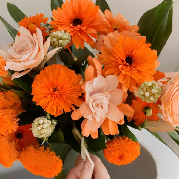 Enciende la alegría con ‘Amanecer Vibrante’, un ramo de caléndulas, hortensias y rosas. Vibrante mixtura para celebrar momentos.